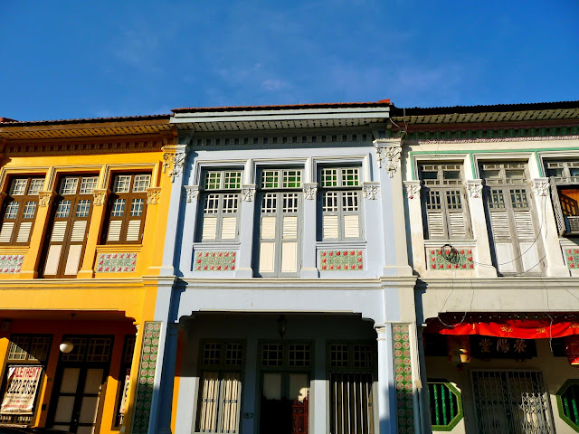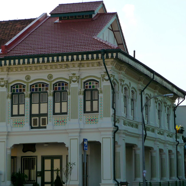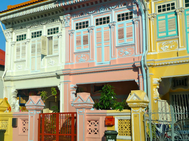 It’s no secret I am a huge fan of bright hues and happy colours. Peranakan houses look exceptional in contrasting colours, even garish ones. I can’t imagine ever painting my home in these colours, but they seem to work beautifully with the ornate structure of the Peranakan houses. Note the tile work on the facade. Lovely! Methinks the houses below are located in Singapore.
