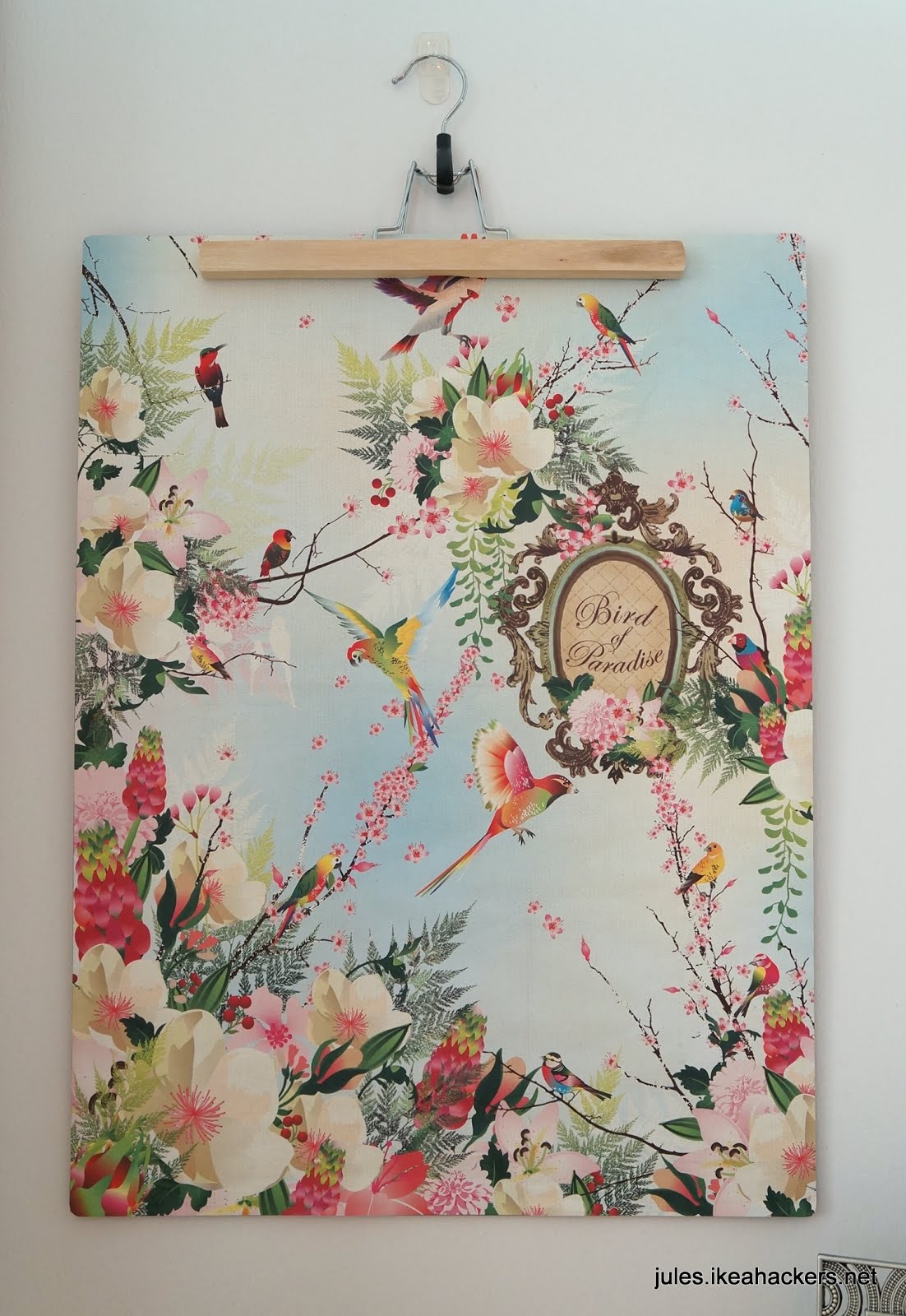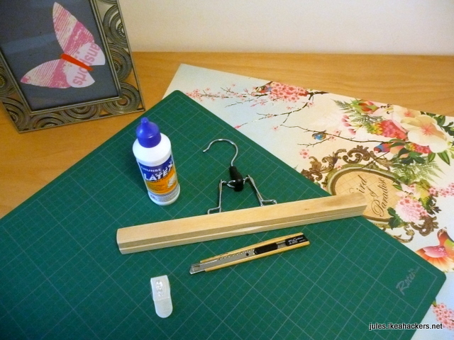The idea was to turn the mat into wall art. It’s flat. I don’t need to use the back side of the mat. Perfect! The question was how to hang it. Enter the BUMERANG Pants Hanger. I chose the pants hanger instead of skirt hanger as I didn’t want little teeth marks on my board.