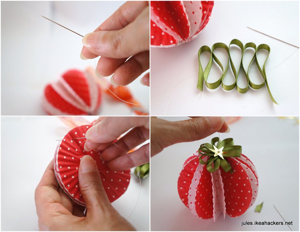 Then while searching for inspiration, I came across this gorgeous wedding pom-pom garland made from cupcake liners. I thought, surely the idea will work for ornaments too. So the experiment began.