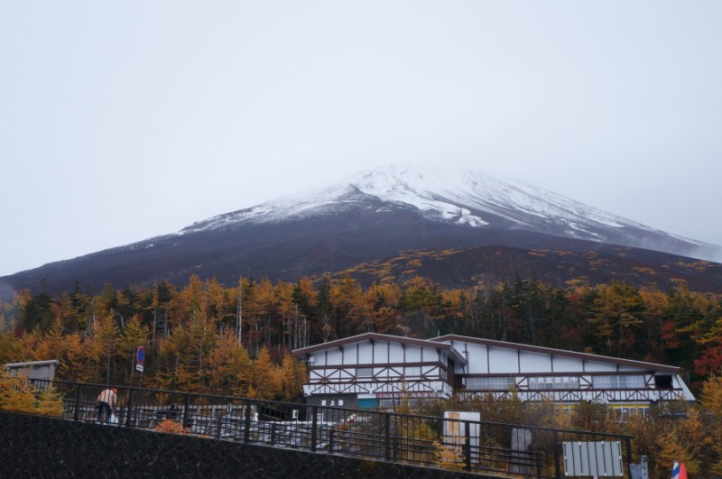 Fujisan is Japan’s highest mountain and stands at 3776 meters. On the day we were supposed to go to Mount Fuji, it rained. I was devastated. The chances of catching the perfect volcano seemed slight. Nevertheless, we perked up our spirits and tried to enjoy the scenic winding route up to Station 5. The fall colours were coming out to play and greeted us with a beautiful palette of gold, red and yellow. Even in the rain, it was spectacular. I was appeased.