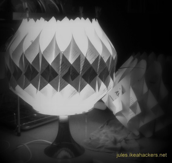 So, I created a new paper shade for it. Part of the inspiration struck when I saw this paper shade and I thought its onion shape would make a bulb look fab. (Onion, bulb, get it? Or is it a lotus?)